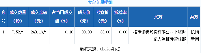 此外,2月25日,华东医药也发生了一笔大宗交易,总成交7.52万股,成交金额248.16万元,成交价33元,为机构账户卖出。