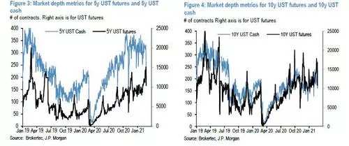 3、货币对冲后的日本和欧元区的投资者介入购买美债。最近的TSY抛售显示,货币对冲后的美国国债收益率的吸引力上升,特别是对日本投资者而言,但在当前的UST波动水平下,实现这种流动的可能性很低,因为这些投资者尤其是银行避免高水平的利率波动。
