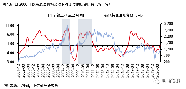 回溯历史我们发现,自2000年以来,受国际金融市场通货膨胀的影响,原油、金属等初级大宗商品价格波动所引起国内通货膨胀,有两个历史时期,分别是2007年9月至2008年10月、2010年2月至2011年11月。