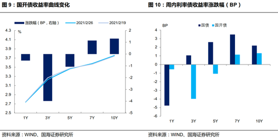 国开债收益率短下长上。2 月 26 日,1 年期国开债收益率报 2.7380%,较上周五下行 0.55BP;3 年期国开债收益率报 3.2310 %,下行 3.98BP;5 年期国开债收益率报 3.4650%,下行 1.07BP;7 年期国开债收益率报 3.5770%,上行1.15BP;10 年期国开债收益率报 3.7542 %,上行 1.31BP。