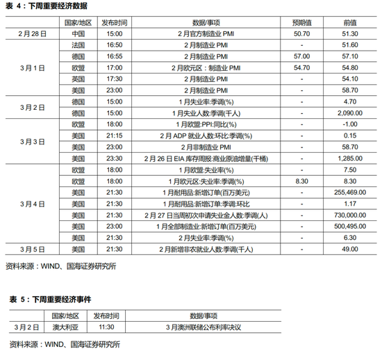 本周央行继续回笼流动性。本周央行共投放 700 亿元 7 天逆回购。其中周一到周三(2 月 22 日至 24 日)各投放 100 亿元 7 天逆回购,周四到与周五(2 月25 日至 26 日)各投放 7 天逆回购 200 亿元。本周共有 900 亿元央行逆回购到期,全口径公开市场操作实现净回笼 200 亿元。之后一周(3 月 1 日至 5 日),将有 700 亿逆回购到期。