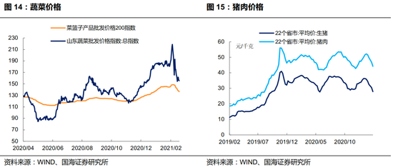农业部、山东蔬菜价格下跌。2 月 26 日,农业部菜篮子批发价格指数收于 136.61,较上周五下跌 4.82%;山东蔬菜批发价格指数收于 155.72,较上周五下跌11.24%。