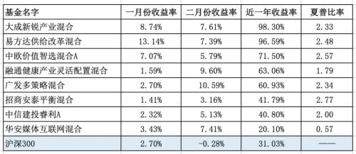 在介绍前,先给到沪深300涨跌幅数据供参考。沪深300:1月份上涨2.70%,2月份下跌-0.28%,近1年上涨31.03%。