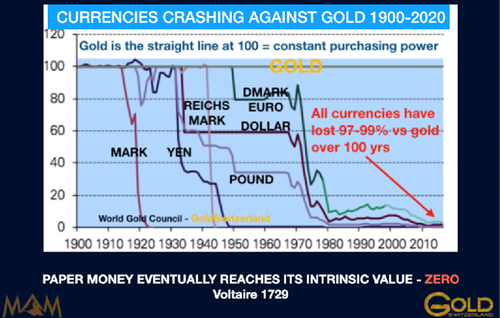 “我们需要明白,这最后的几个百分点的下跌意味着从今天起100%的下跌,以及冯·米塞斯所预言的现行货币体系的消亡。” 格鲁耶尔写道,“记住,黄金才是唯一存在了5000年的货币。”