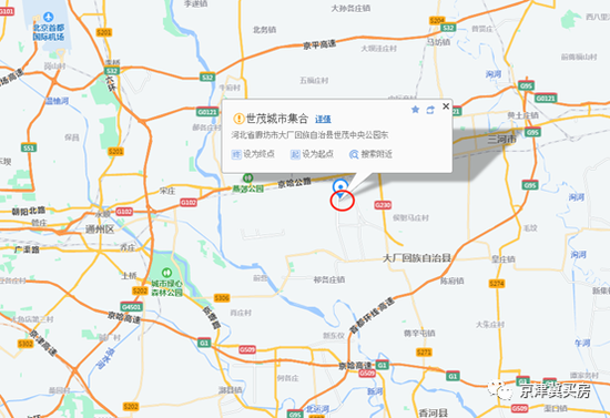 另外,项目宣传资料显示,该项目距离城市副中心通州20公里,距离国贸40公里左右。