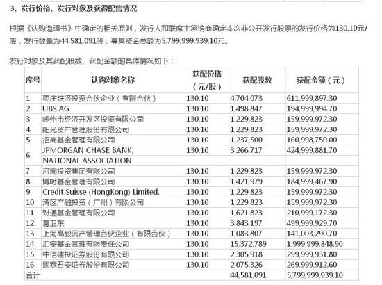 2020年7月28日,闻泰科技发布非公开发行结果,配套融资申购名单中,出现了高毅资产、睿远基金、湾区产融投资、葛卫东、UBS(瑞银集团)、JPMORGAN(摩根大通)等知名投资者,最终16名发行对象以130.1元/股大幅度溢价认购,总共募资58亿元。