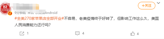 3月2日,#全美270家苹果店全部开业#登上微博热搜。