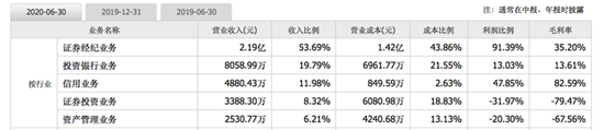 《今日财富》杂志查阅太平洋证券经营分析发现,截至2020年上半年,除了证券经纪业务和投资银行业务有小幅增长,公司的证券投资业务、信用业务和资产管理业务都出现了不同程度的下滑。其中,证券投资业务从5.68亿元下降到2.19亿元,幅度较大。