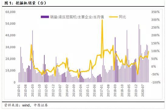 据中国工程机械协会此前公布的数据显示,2021年1月份,26家挖掘机企业共销售各类挖掘机19601台,同比增长97.2%。其中国内16026台,同比增长106.6%,出口3575台,同比增长63.7%。自2019年下半年以来,挖掘机销量持续出现爆发式增长态势。