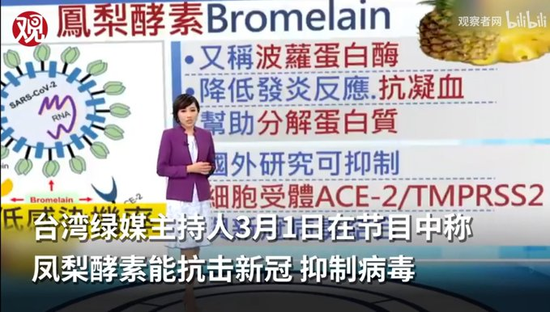 具体就是有台媒指出,“凤梨酵素可以抗击新冠”。