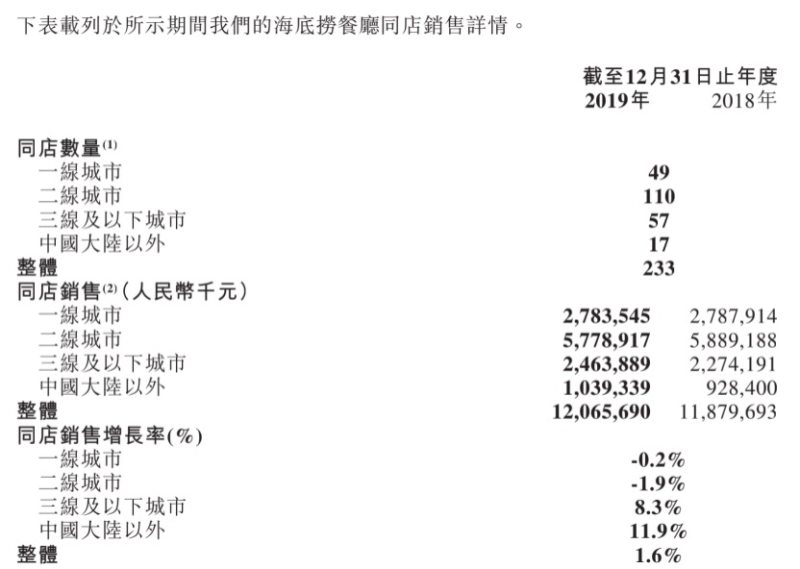 的确,就上述同店数据来看,三线及以下城市、海外市场的表现都较为积极。此外,就2020年中期业绩来看,三线及以下城市的翻台率也已首次超过一二线,为3.6次/天,而同期集团整体的翻台率为3.3次/天。