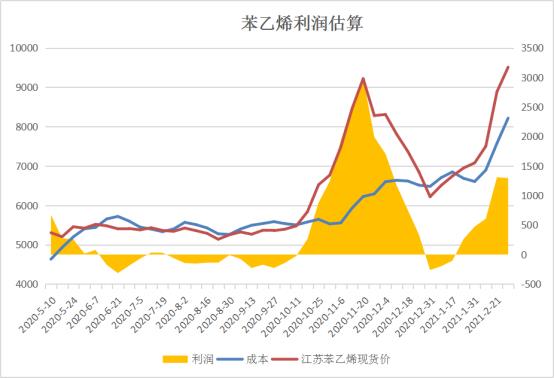 进入2021年苯乙烯绝对是化工期货中涨势最稳健品种,并且在春节后加速上扬,在2月末缔造万元以上的上市纪录新高,较去年十一长假后那轮涨势,无论是从时间跨度还是绝对涨幅均更胜一筹。