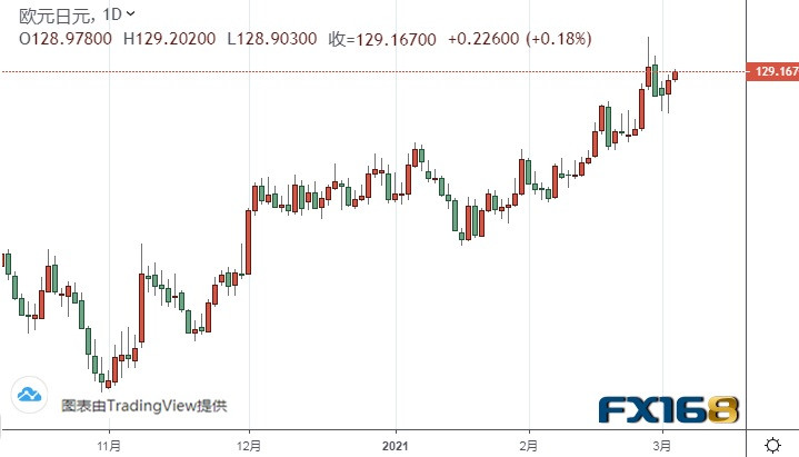 欧元/日元也显著反弹,并可能在短期内尝试重新测试130,汇价料自这一水平回落。