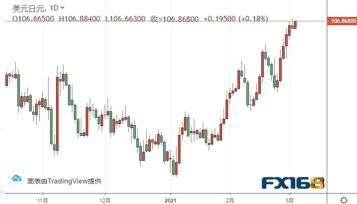 美元/日元继续走高,并可能测试107,这是当前水平上方的一个短期阻力位,并可能在中期内推动美元/日元重回106-105.50水平。只有当美元/日元没有从107回落,该汇价才有可能升至更高的108。现在关注107附近的价格走势。