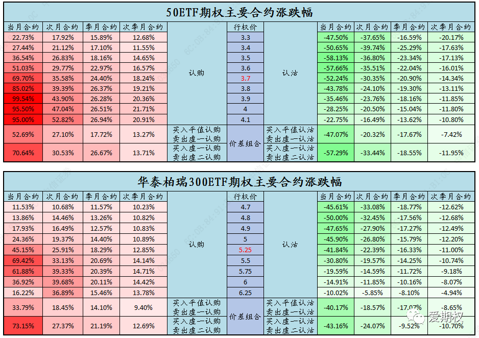 今日认购期权普涨。平值和浅虚值认购期权涨幅较高,牛市价差、实值认购也普遍获利。