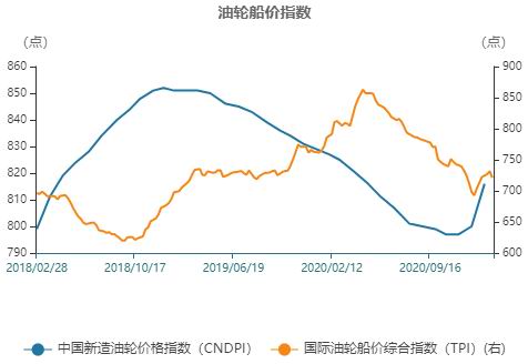 截止至2021年02月24日,国际油轮船价综合指数(TPI)为720.94点