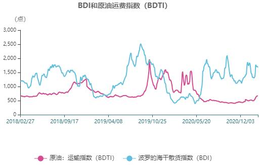截止至2021年02月26日,全球原油运输指数(BDTI)为669点,波罗的海干散货指数(BDI)为1,675点。