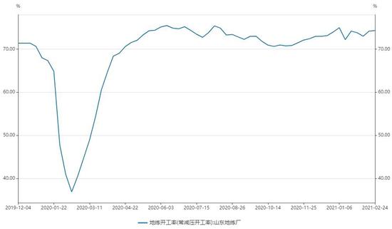 金联创数据显示,截至2021年2月24日,山东地炼常减压开工率为74.33%,维持高位。