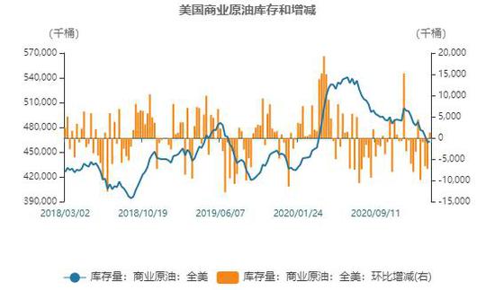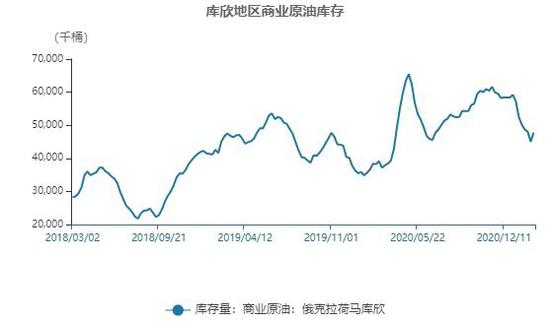 截止至2021年02月19日,美国原油和石油产品(含战略储备)合计库存为1,922,540千桶,较上周减少13,812千桶;其中战略石油储备为637,773千桶,较上周无变化;商业原油库存为463,042千桶,较上周增加1,285千桶,库存环比上升0.28%,同比上升4.45%;库欣地区商业原油库存为47,823千桶,较上周增加2,807千桶。