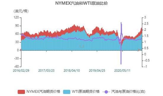 截止至2021年02月26日,NYMEX汽油期货的收盘价为1.95美元/加仑(折合81.92美元/桶),与上一日比下跌0.03美元/加仑,汽油期货与WTI原油的价差为19.61美元/桶,价差处于历史平均水平;
