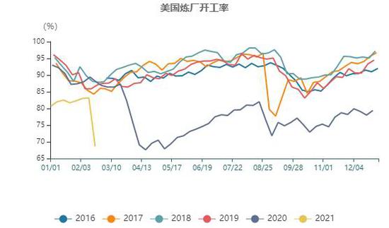 截止至2021年2月19日,炼厂产能利用率大幅下降至68.6%。