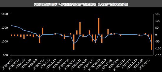 美国原油产量连续两周下降,2月17日当周下降20万桶/日至1080万桶/日,2月24日当周大幅下降110万桶/日至970万桶/日,预计随天气变暖美国原油产量将逐渐恢复