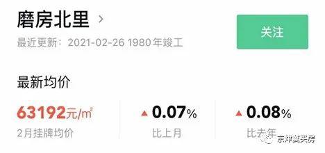 正在改造中的磨房北里小区,2月挂牌均价63192元/平,同比去年上涨0.08%。