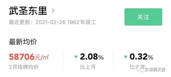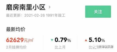 普遍已改造过的磨房南里小区,2月挂牌均价62629元/平,同比去年上涨5.10%。