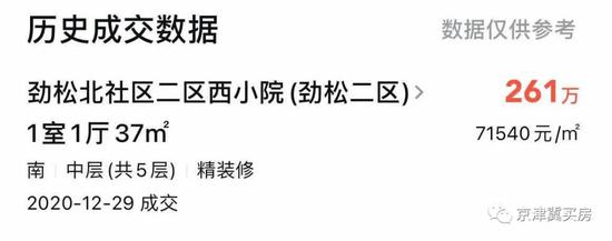 劲松北社区二区小户型单价更贵,据安居客最新历史成交数据显示,37平一居室总价261万,单价7万元/平。