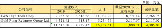 经整理,这两家公司从2019年至2020年上半年合计形成了1.63亿的营收,但应收的余额仍有1.19亿。也就是说2019年的销售,到2020年上半年只回款了0.44亿,回款情况似乎并不乐观。