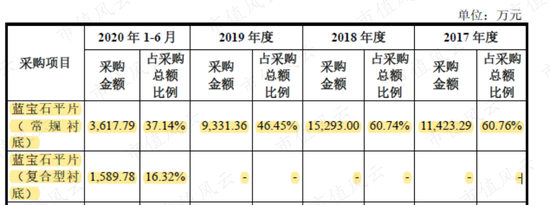 但是根据博蓝特的采购数据,原材料中的“蓝宝石平片(复合型衬底)”在2020年才开始有采购,2019年以前均为0。