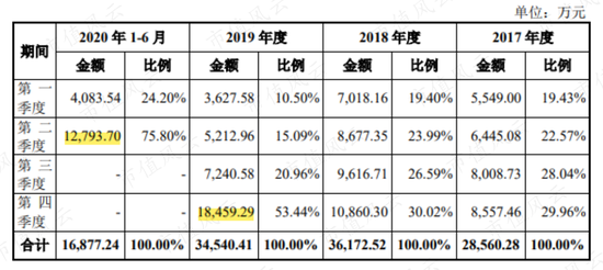 博蓝特的营收有季节性特征吗?根据数据,下半年销售额略高于上半年。但是2019年第四季度博蓝特营收高达1.85亿元,远高于往年同期水平,2020年第二季度营收也高达1.28亿。