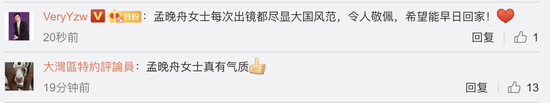 另一部分网友则表达了对孟晚舟女士的支持,称赞孟晚舟女士的“王者风范”。
