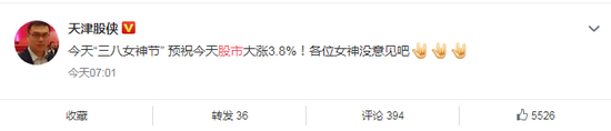 恰逢一年一度的三八妇女节,有财经大V在微博“许愿”称预祝A股今日大涨3.8%,但截止午间收盘,并未能如愿。