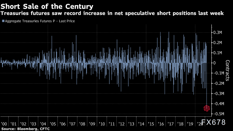 在刺激计划推出的良好预期和疫苗接种进程加快的背景下,投资者大举押注美国国债下跌,债券看空程度上周达到创纪录水平。