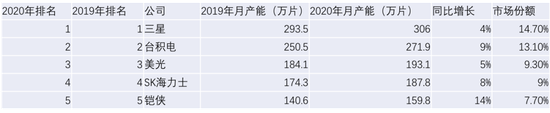 但8寸晶圆的产能却远跟不上需求增长的速度,甚至8寸晶圆厂在逐年关闭。在中国大陆来说,芯片项目在技术先进性上的导向以及盈利,很多项目在落地时就瞄准了12寸产线,还有一些8寸产线转成12寸产线。根据第三方数据机构IC Insights统计,三星电子2020年底月产能为306.0万片8寸晶圆,位居第一大厂,其次为台积电。