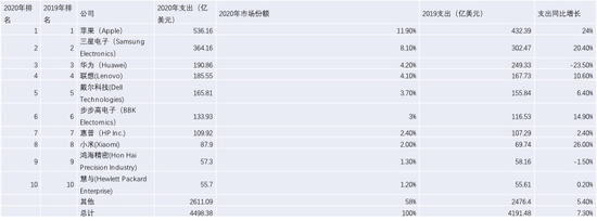 2019、2020年全球芯片采购金额公司排名