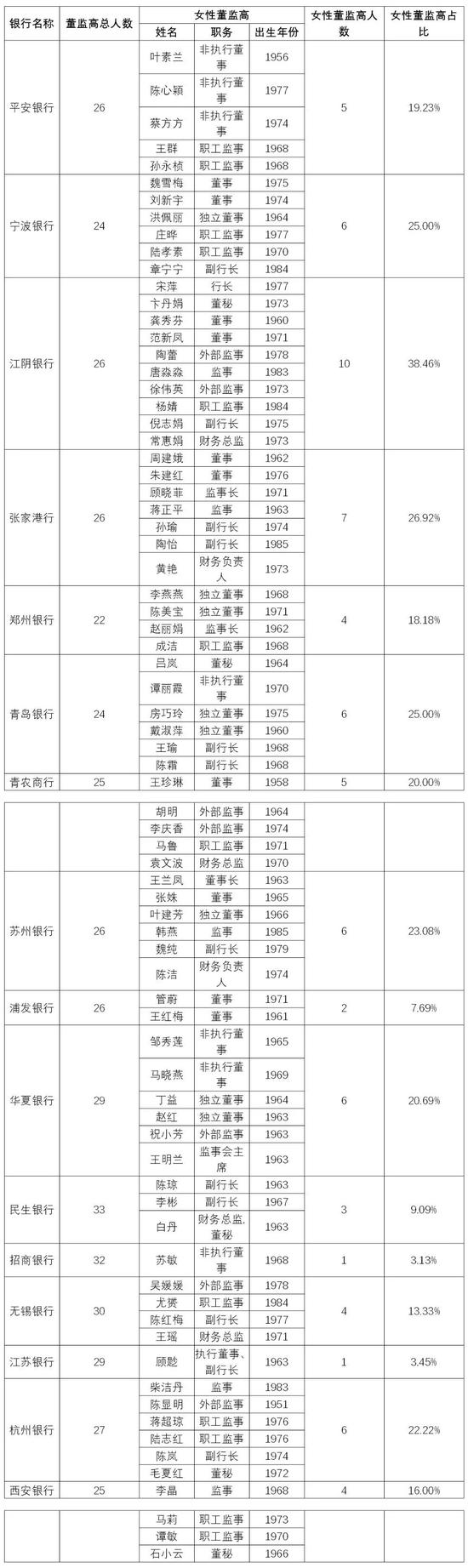 原标题:“她力量”崛起!38家A股上市银行女性董监高一览