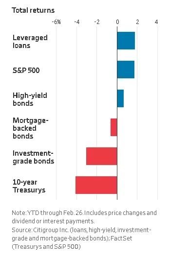 美国国债遭遇抛售,迫使固定收益投资者纷纷转向一些一般不太可能被认为是避风港的资产寻求庇护,如垃圾债券、公司贷款、股票挂钩债券,甚至是股票,同时,出售抵押贷款支持债券和投资级公司债等与政府债券交易一致性更高的资产。