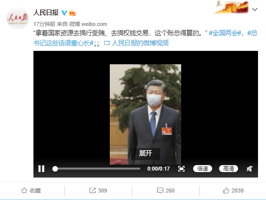 “拿着国家资源去搞行受贿、去搞权钱交易,这个账总得算的。” #全国两会#,#总书记这些话语重心长#↓↓
