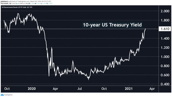 近日,全球金融基准10年期美国国债收益率突破1.6%。