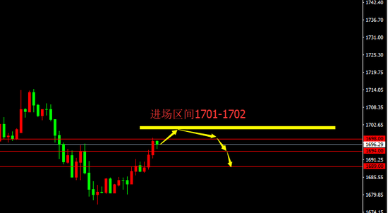1701-1702区间沽空,止损3美元,目标1698、1694、1689。