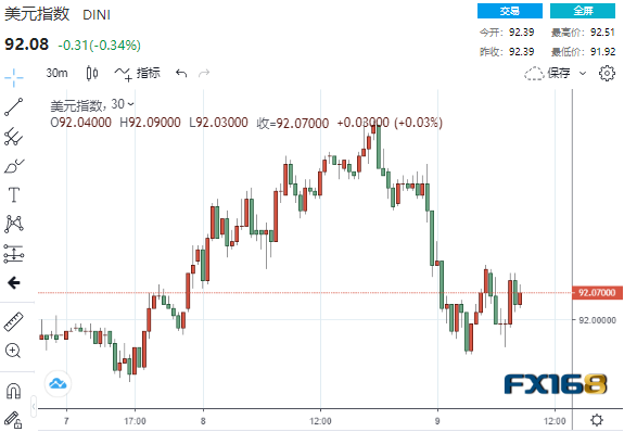 (美元30分钟走势图,来源:FX168)
