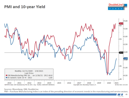 1)短期内国债超卖,长期国债(30年)会有小幅度反弹。他展示了不同模型显示十年国债利率应该交易在1.5%-3%。这次他没有很明确提出对下一步国债怎么走的看法(他自上年末一直都是看走高)。他认为联储会在十年期升穿2%后才会动手做YCC。