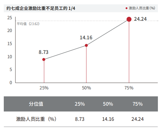 约七成企业激励比重不足员工的1/4(数据来源:理脉)