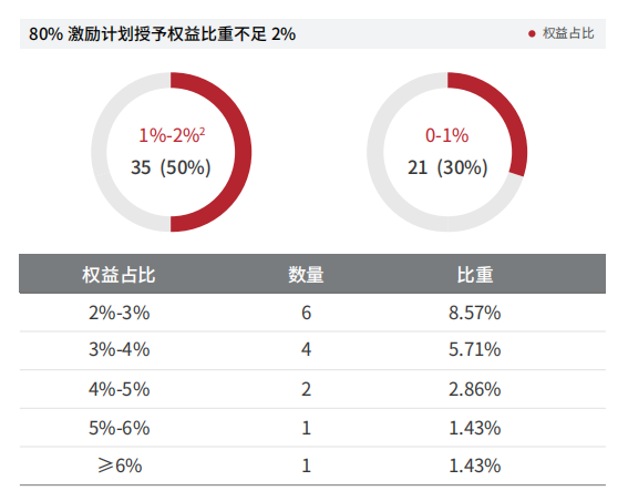 此外,即使覆盖面颇高,但从权益数量与总股本的占比来看,这些推出股权激励计划的企业的控制权,也不会受到影响。