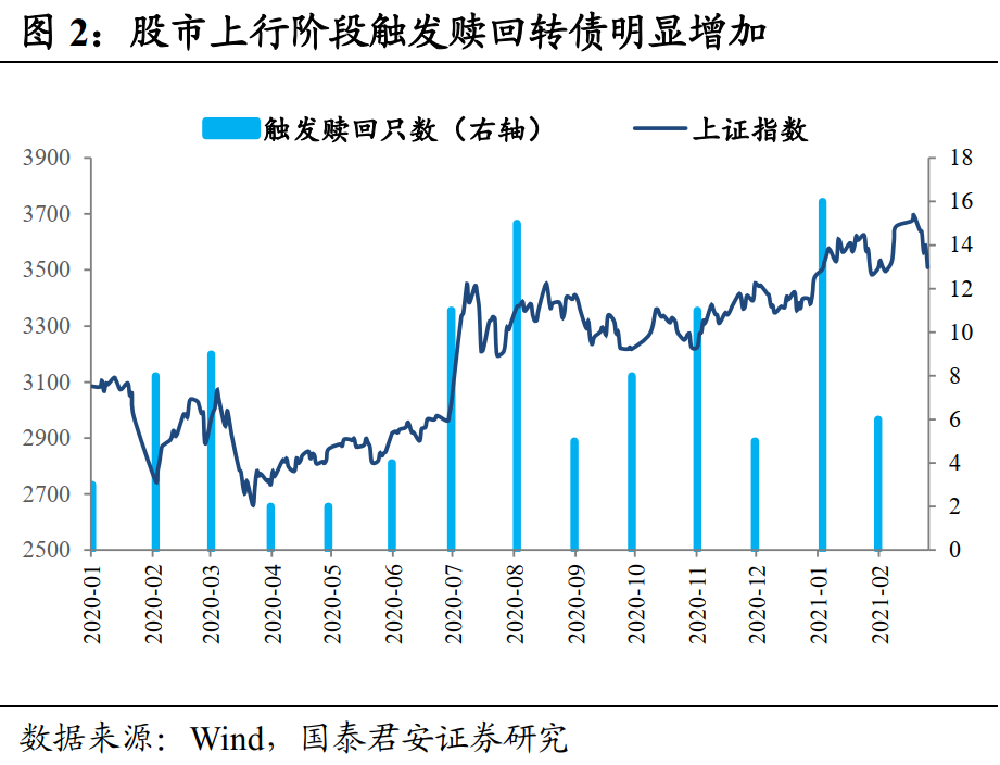 2021年以来,可转债市场出现“强赎潮”。截至3月9日,已有18只转债公告强赎。一方面由于大量可转债对应正股的股价在经历前期上涨后有所回调,公司抓住此次机会执行强赎;另一方面可转债新规可能导致发行人放弃强赎的成本提升。本篇报告主要关注可转债强赎条款带来的风险和短期投资机会。