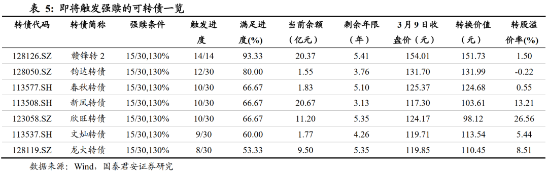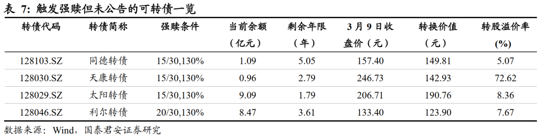 4. 对于触发强赎后未公告的转债,需关注强赎风险,尤其是转股溢价率较高的品种,如天康转债。