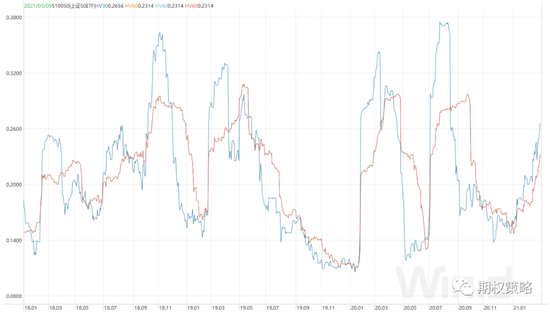 从标的波动率来看,沪市50ETF30日历史波动率微涨至26.56%,60日历史波动率微涨至23.14%,均已处于近三年中枢略高位置。标的大跌,期权隐波冲高回落,沪市50ETF波指收跌至25.63%,300ETF波指收跌至25.30%。沪市50ETF3月平值认购隐波收平至24.95%,认沽隐波收跌至26.62%。