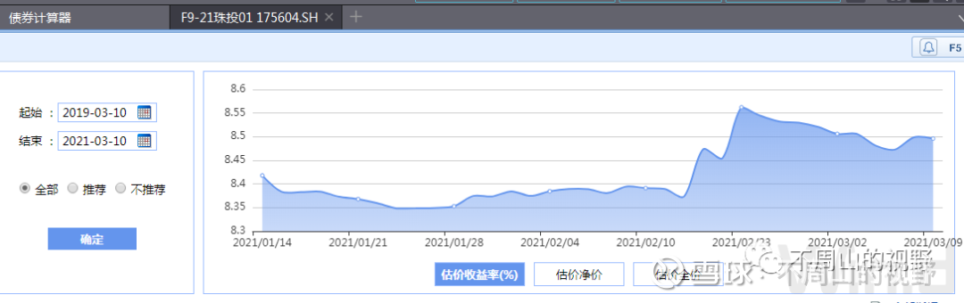 如果关键成交数据大多是刁民驱动的,然后估值生成靠成交来驱动,二级估值数据出现偏差就很明显了。就像下图的情况,如果二级都是在8.5%,即便一级出现10%,12%的情况,也需要考虑是一级牵动二级,还是二级牵动一级,考虑到现在一级定价能力极弱市场极度不认可的情况,大部分估值机构会选择一级朝二级靠拢,就让有人钻了空子。